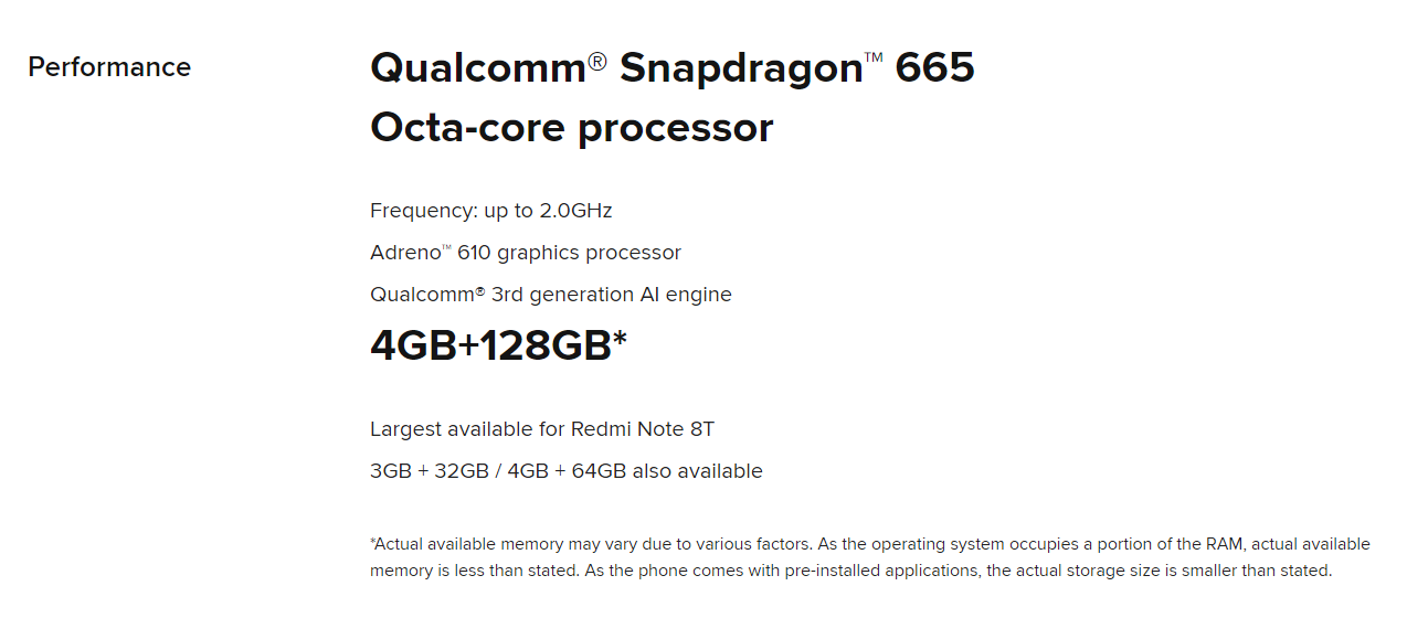 홍미노트 8T의 스펙을 살펴보면 먼저 퀄컴 스냅드래곤 665 프로세서를 탑재하고 있습니다. 2.0GHz 코어 4개, 1.8GHz 코어 4개를 가지고 있네요. 프로세서의 성능을 체크할 때 어떤 분들은 벤치마크나 GSM 아레나 등의 자료를 보기도 합니다. 저는 단순히 기존에 쓰던 폰의 프로세스와 비교해서 그것보다 고성능이면 된다는 생각을 가지고 있습니다. 너무 단순한가요? ㅎ