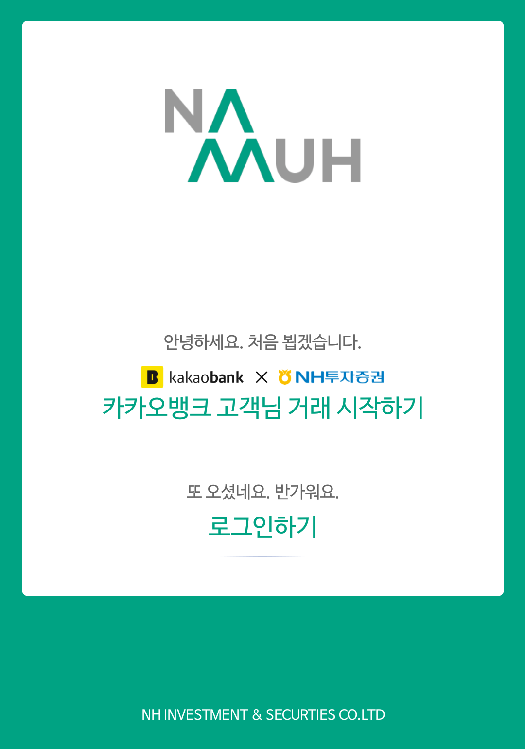 앱을 맨 처음 실행하니 시작하는 경로가 일반가입자랑 카카오뱅크 가입자는 다르게 나오네요. 몇가지 본인 확인 절차를 거치고(이름, 주민번호, 휴대번호 인증 등) 로그인을 하니 첫화면에 발행어음 관련 바로가기가 떠 있습니다.