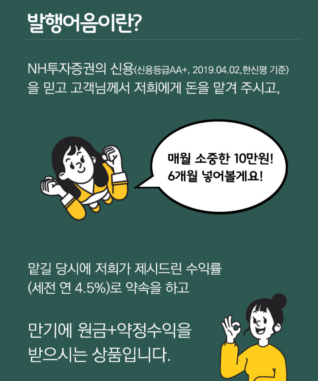 발행어음이라는게 뭔지 처음 들어봅니다. 이 회사의 신용등급을 믿고 투자를 한다는 얘기인거 같은데 뭔지 정확하게는 모르겠습니다..