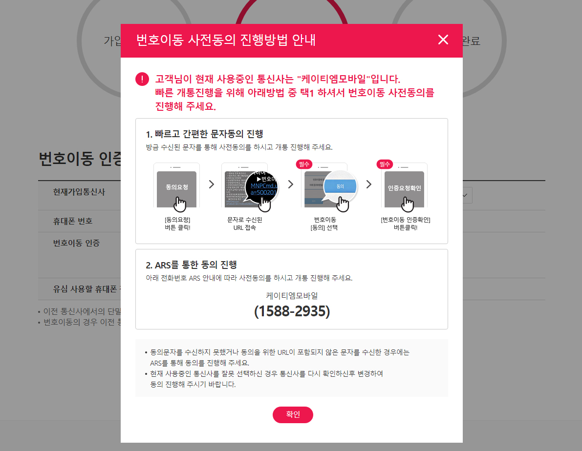 번호이동 사전동의 진행방법 안내라고 해서 기존 통신사에 동의처리를 하는게 있나봐요. 동의를 정상적으로 완료한 것 같은데 번호이동 인증 상태에서 넘어가지를 않네요. 처음에는 사용하는 브라우저 문제인가 싶어 여러번 시도를 하게 되었습니다.